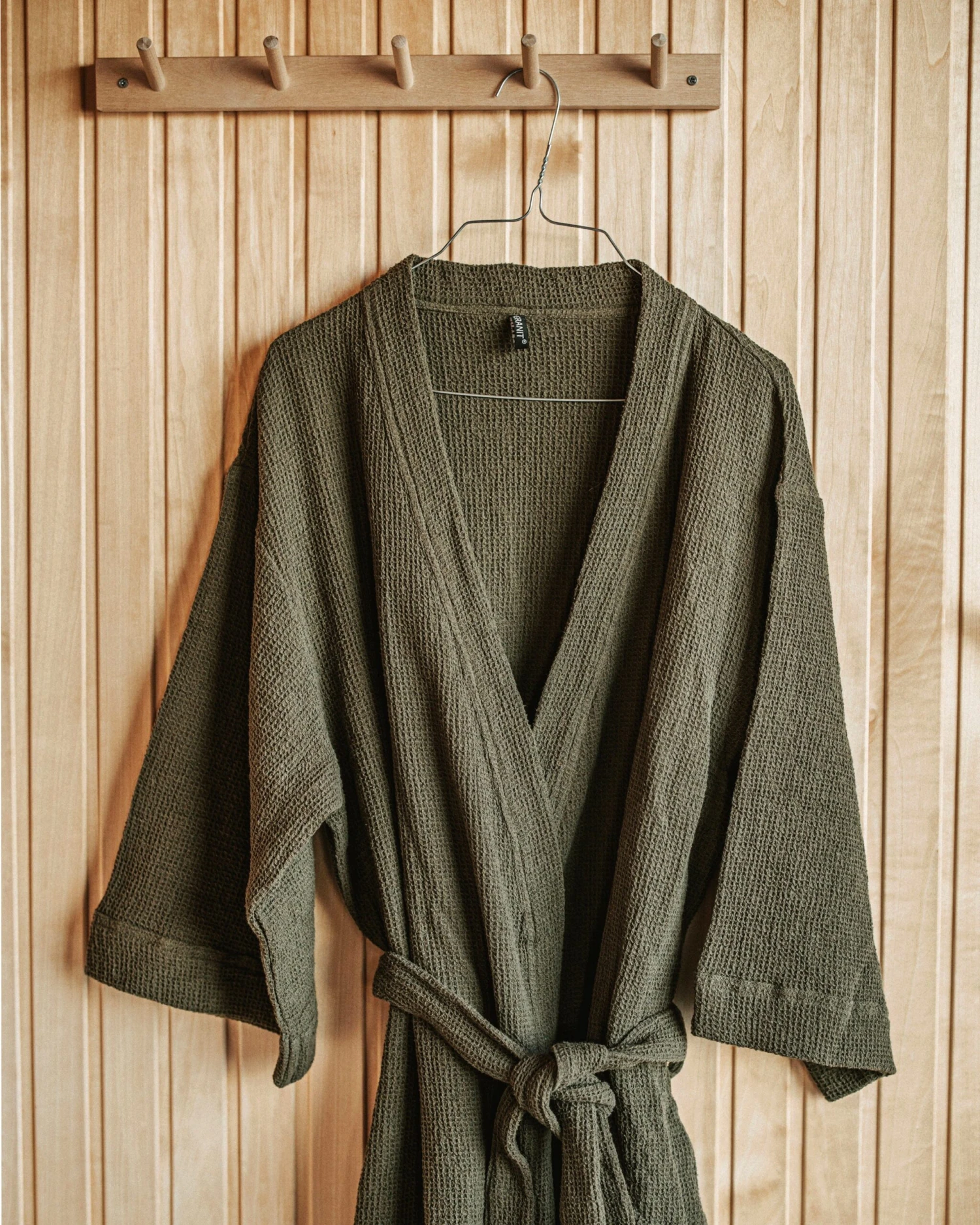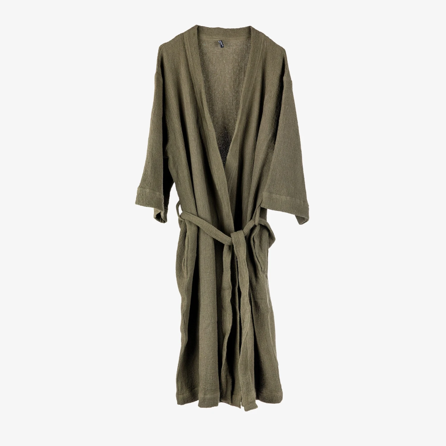 Bademantel Waffelstruktur Grau Khakigrün Einheitsgröße