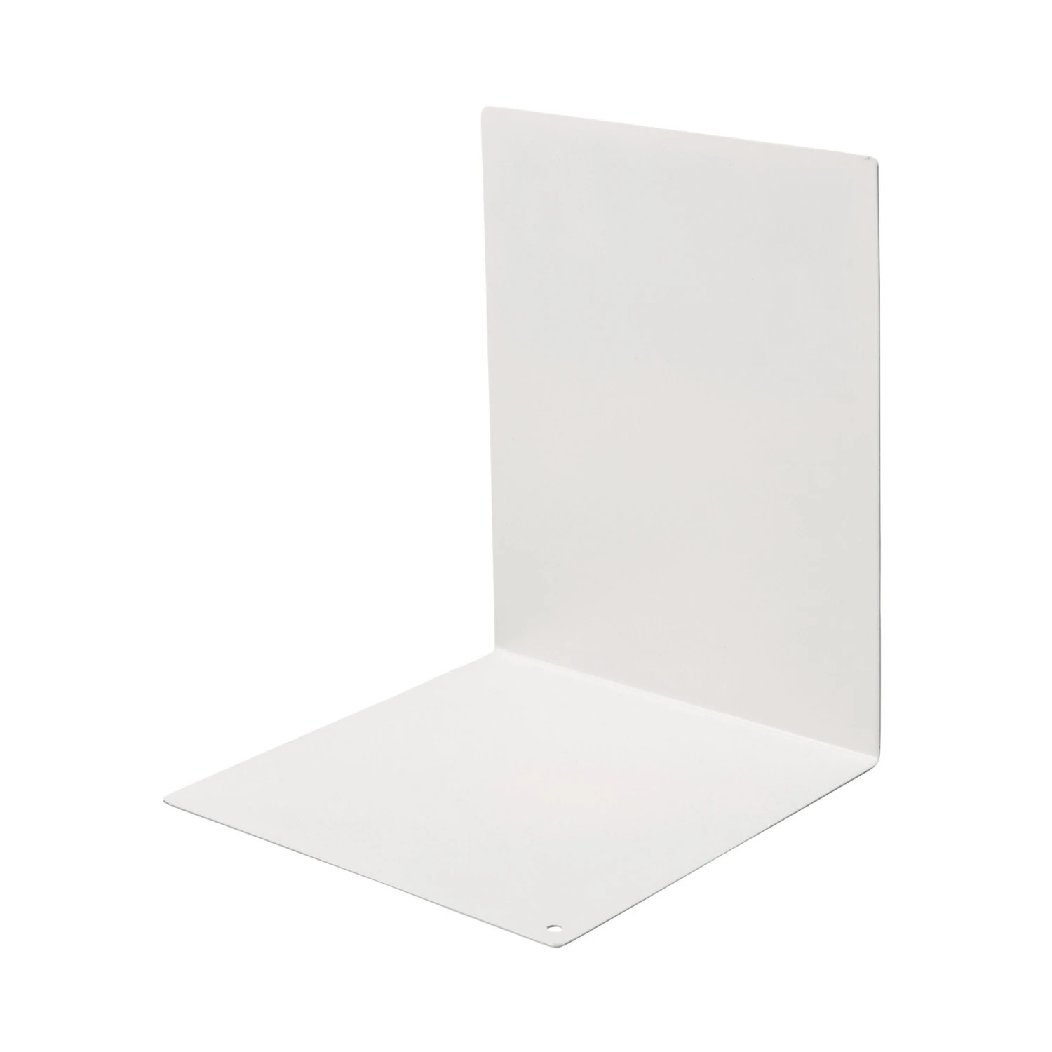 Praktische weiße Buchstütze aus dünnem pulverbeschichteten Metall.