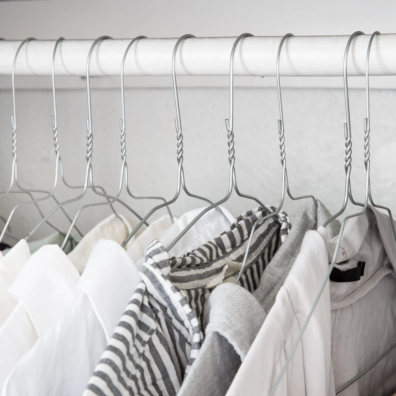 Chaos im Kleiderschrank? Verknitterte Blusen und Hemden? Wir haben die Lösung! Unsere Metallbügel benötigen nur wenig Platz im Schrank, da sie besonders schmal sind. Somit sind sie zur Kleideraufbewahrung perfekt geeignet. Erhältlich im praktischen 10er-Pack. Für noch mehr Ordnung in deiner Wohnung sorgen unsere Kleiderstangen, Körbe und Aufbewahrungsboxen.