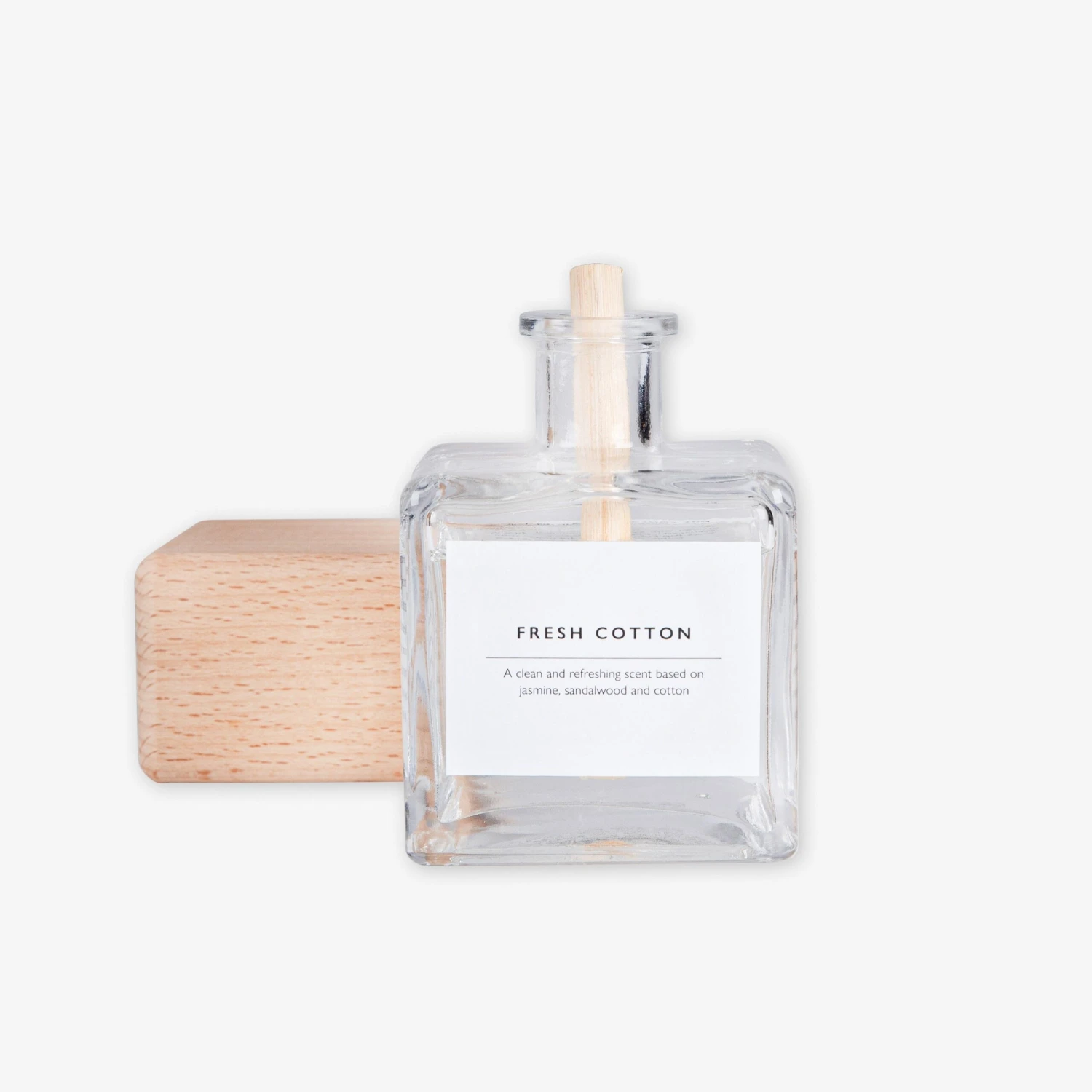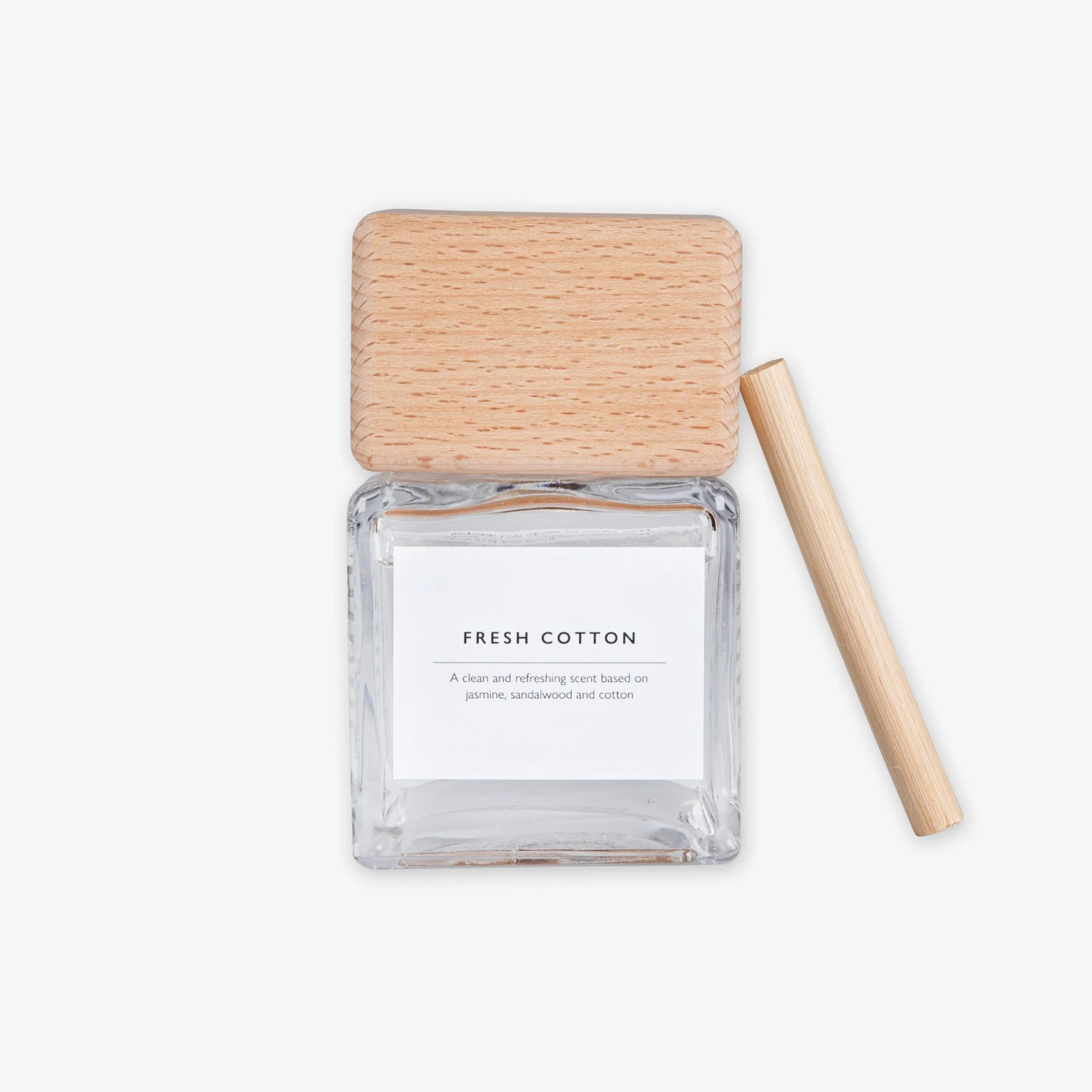 Ein stabiler Diffusor mit einem großen Duftstab, 200 ml Fresh Cotton Duftöl und einem dekorativen Holzdeckel aus FCS-zertifiziertem Buchenholz. Fresh Cotton verströmt einen frischen Duft von Zitrusfrüchten und Blumen mit einer Basis aus Vanille und Holz. Der Duft hält sich in dem geöffneten Behälter etwa 6-8 Wochen.Inhaltsstoffe: (3,7-Dimethyloctan-3-ol; 2-Benzyliden-Octanal; 1-(2,3,8,8-Tetramethyl-1,2,3,4,5,6,7,8-octahydronaphthalin-2-yl)ethanon; 2E-3,7-Dimethylocta-2,6-dien-1-ol). Kann eine allergische Reaktion hervorrufen.
