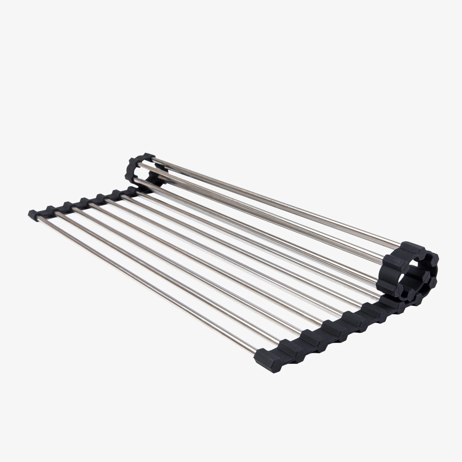Smartes, rollbares Geschirrgestell für die Spüle. Das Gestell kann auch als Untersetzer verwendet werden. Wenn du es gerade nicht zum Spülen benutzt, kannst du es einfach zusammenklappen und in einer Schublade aufbewahren – eine clevere Lösung für kleine Wohnungen.