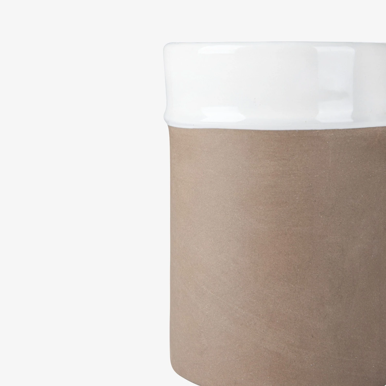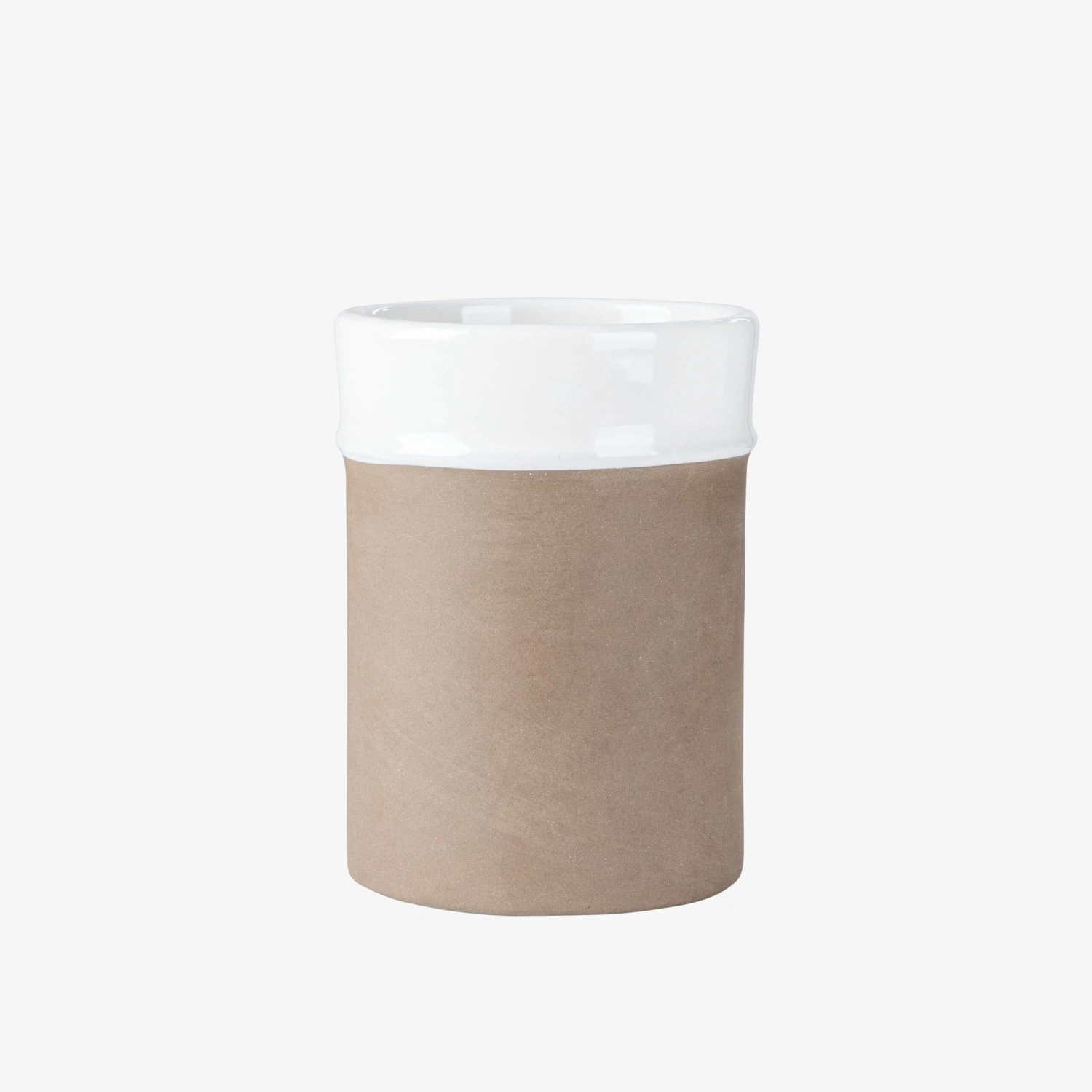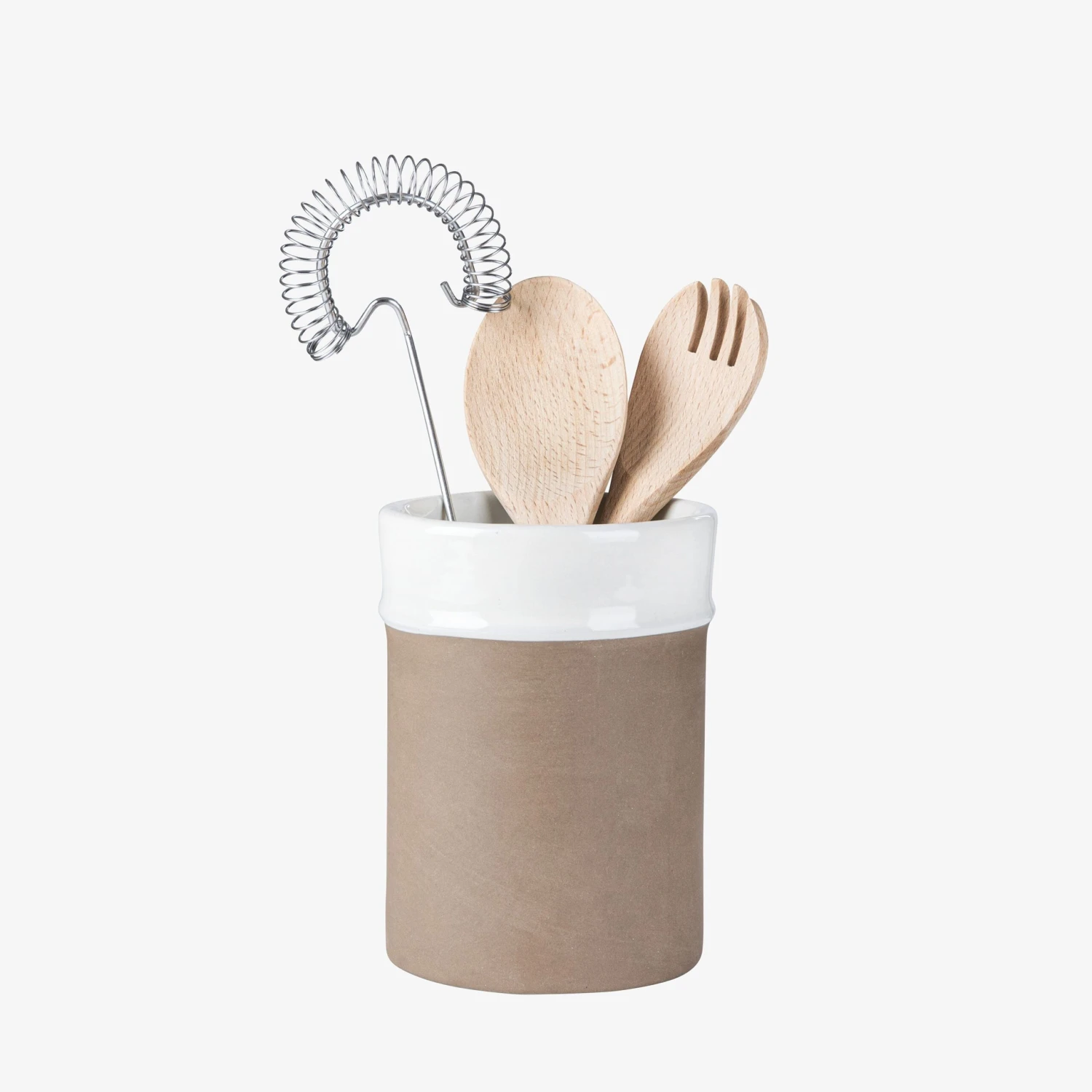 Stilvoller Halter aus teilweise glasiertem Natursteinzeug, geeignet für Küchenutensilien. In der gleichen Serie gibt es eine Servierschale und eine Flasche für Öl/Essig.