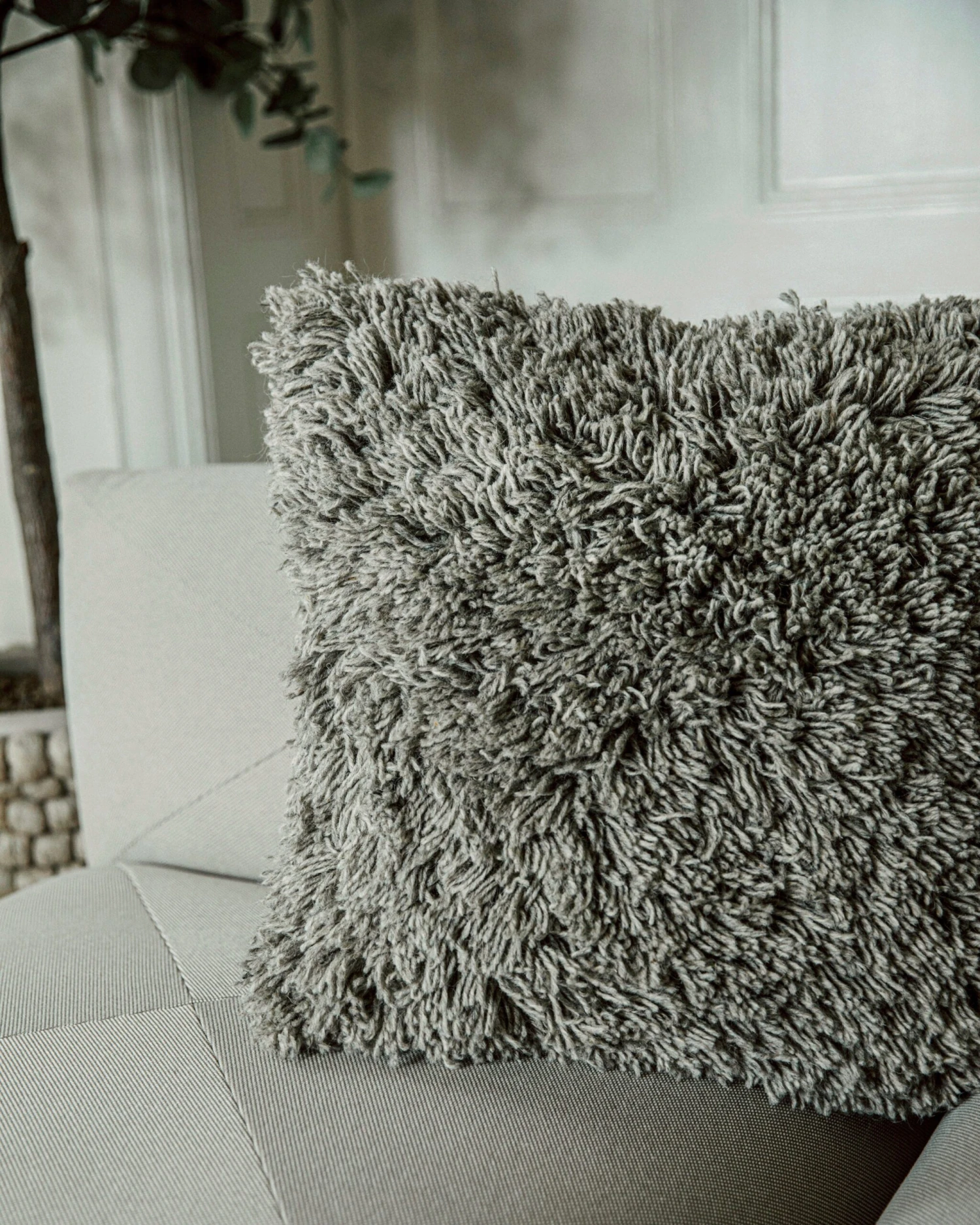 | Stilvolles Zierkissen, passend zum gleichnamigen Teppich. Shaggy wird aus ungefärbter Wolle hergestellt und hat die natürlichen Eigenschaften von Wolle, d. h. es ist schmutzabweisend und zieht weniger Staub an.Das Kissen ist 5 cm lang, die Maße des Kissens sind 50 x 50 cm.Wir verwenden natürliche Materialien, was bedeutet, dass die Farbe variieren kann. Jedes Kissen ist einzigartig. Die Wolle, die für die Herstellung unserer ungefärbten Teppiche verwendet wird, stammt von Bikaneri-Schafen, deren Wolle eine glänzende, leichte und für Teppiche geeignete Wolle von guter Qualität ist. Dank des schonenden Reinigungsverfahrens ohne Chemikalien behält die Wolle ihre natürlichen Eigenschaften. Das sind die einzigartige Farbe der Wolle und die natürliche, schmutzabweisende Oberfläche, die wiederum für einen pflegeleichten, langlebigen und schönen Teppich sorgt. |