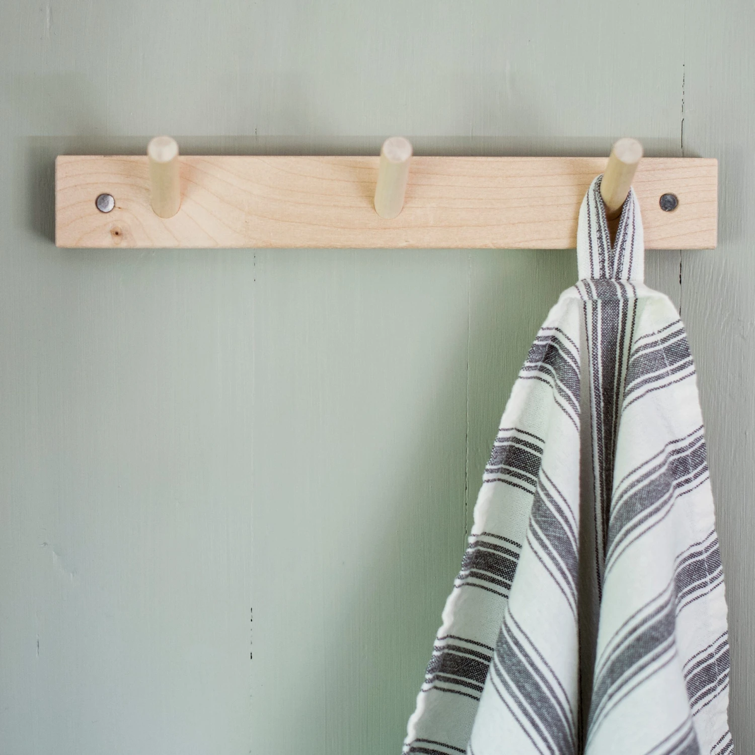 Stilreine Leiste aus Buche mit 9 Aufhängern. Das Dekorieren mit einer solchen Leiste ist einfach und macht einfach Spaß! Du entscheidest, wofür du die Leiste verwenden möchtest. Kleidung, Dekoration oder praktische Dinge, die du immer griffbereit haben willst. Wofür wirst du dich entscheiden? Kann mit anderen Leisten kombiniert werden, wenn man sie z. B. verlängern will.Hergestellt aus massiver Birke. Länge 29,5 cm.