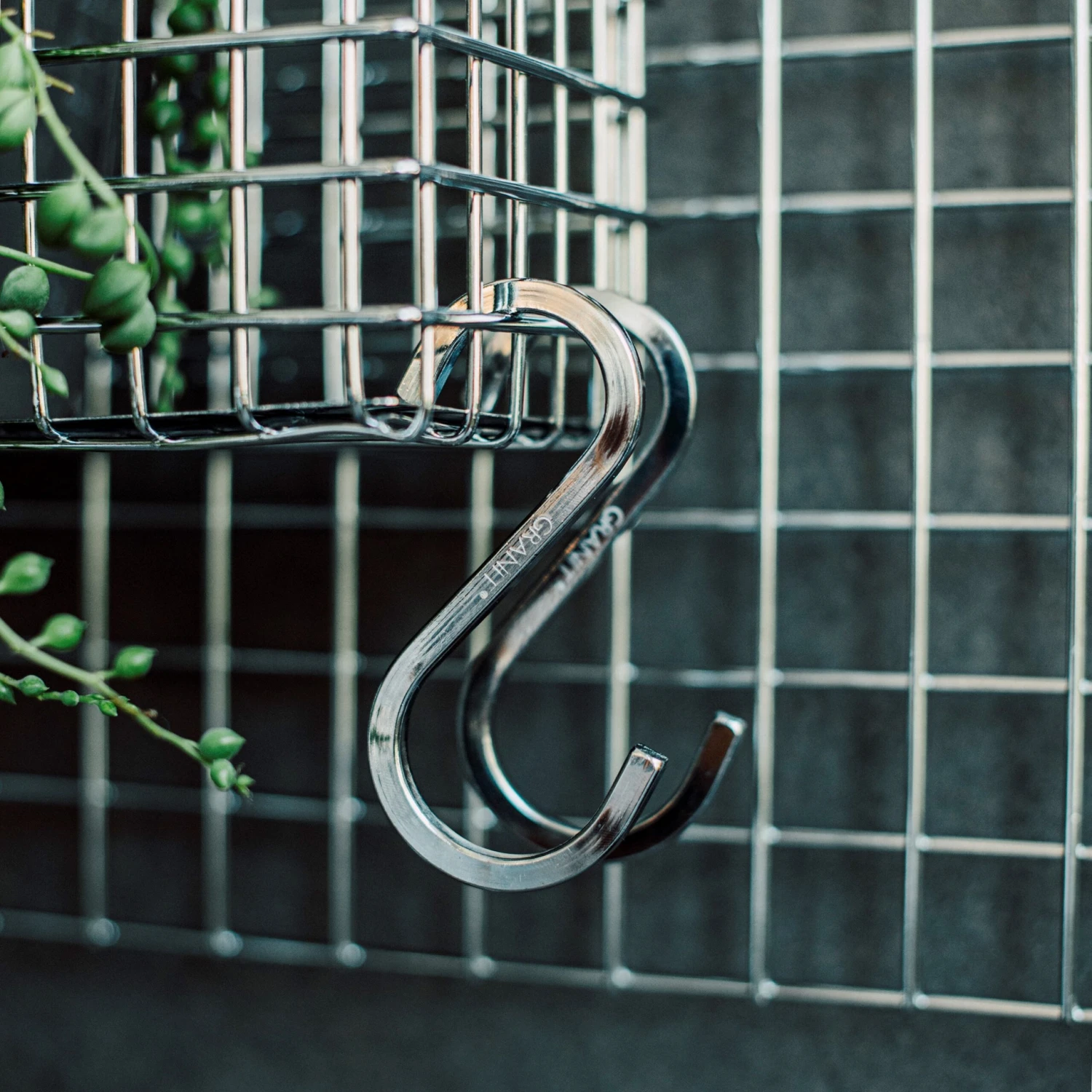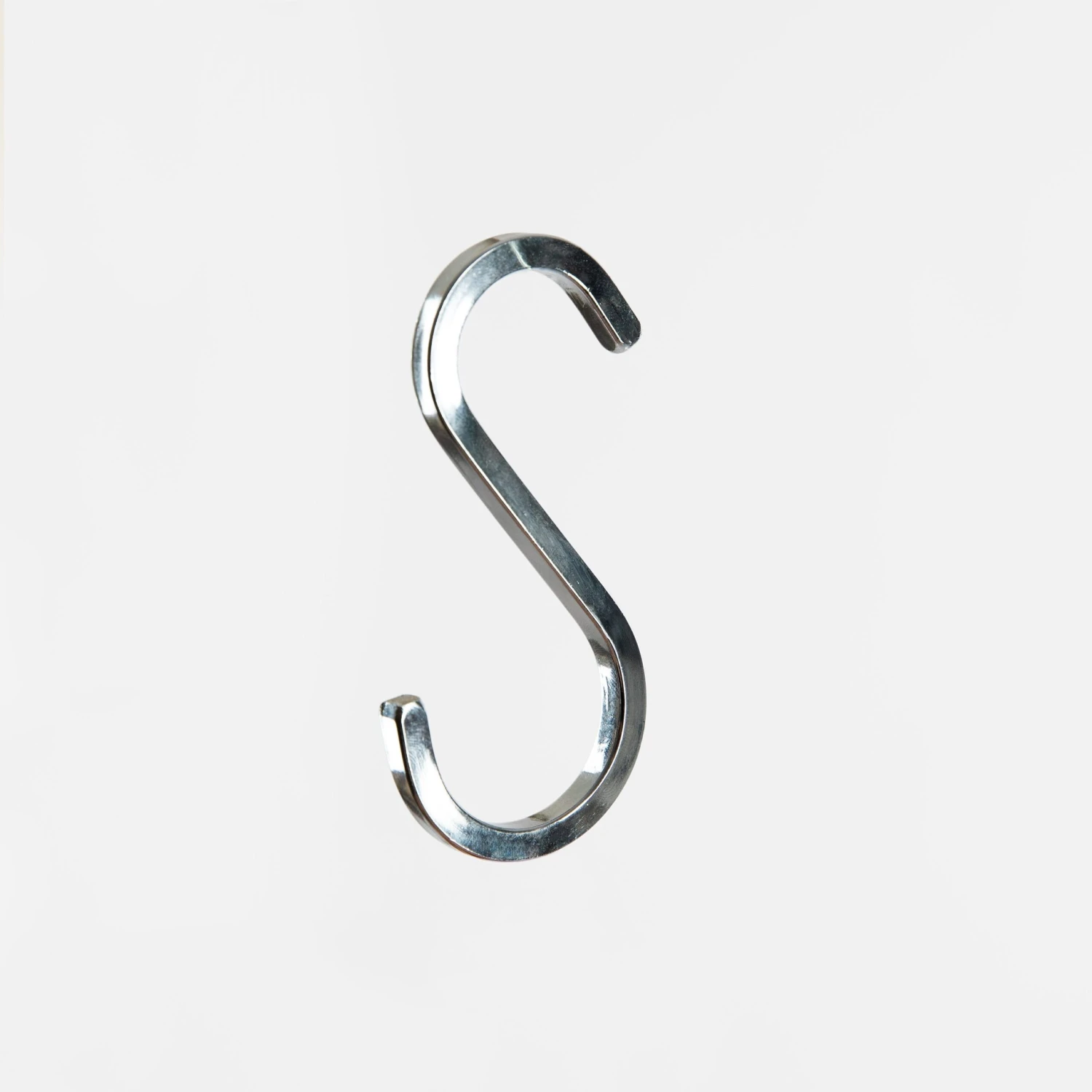 Starrer und flexibler S-Haken aus verchromtem Eisen mit flachen, abgeschrägten Seiten. Die Haken haben unterschiedliche Innendurchmesser von 2,5 cm bzw. 3,5 cm. Praktische Alternative oder Ergänzung zu Kleiderbügeln, Wandhaken usw. Auch in einem größeren Modell erhältlich.