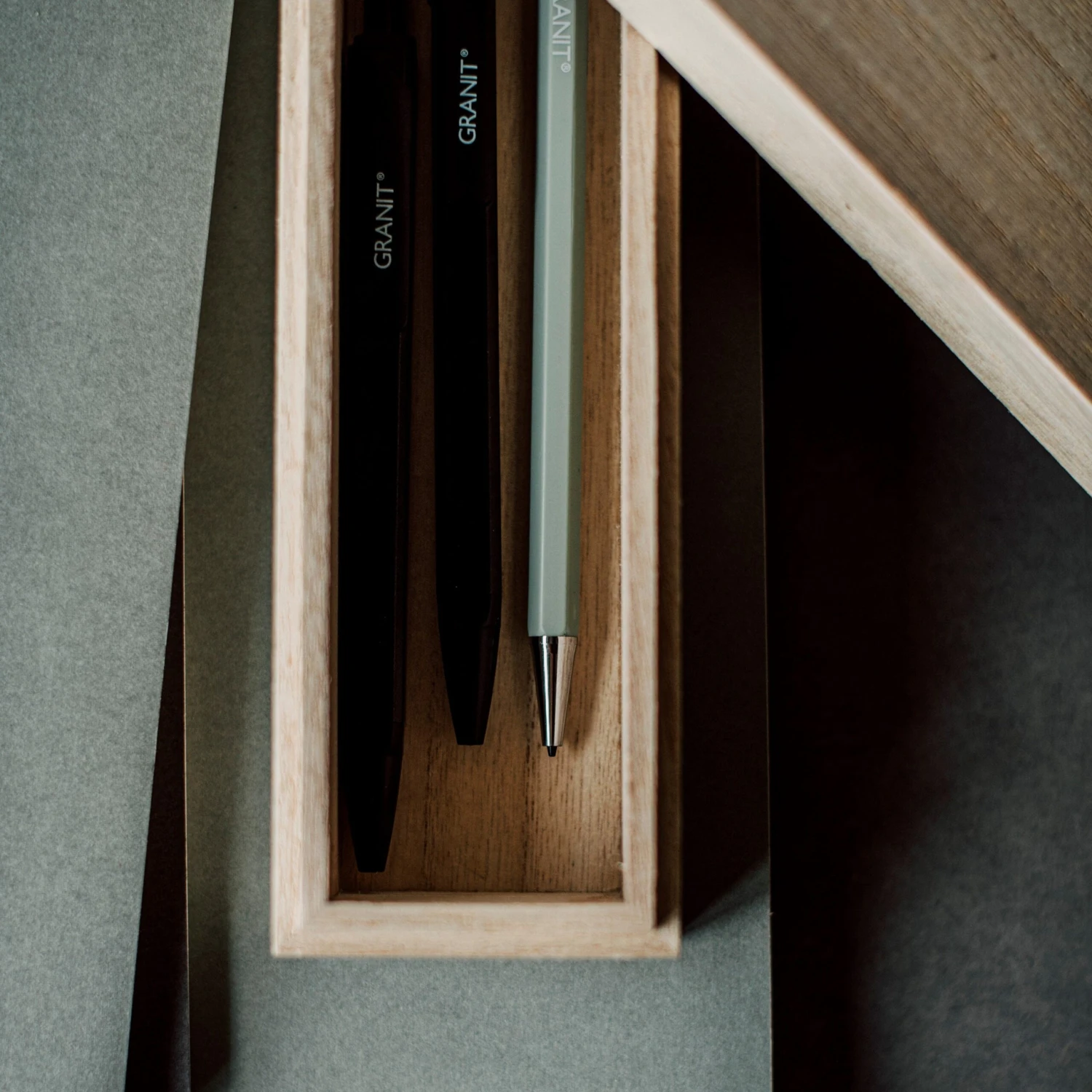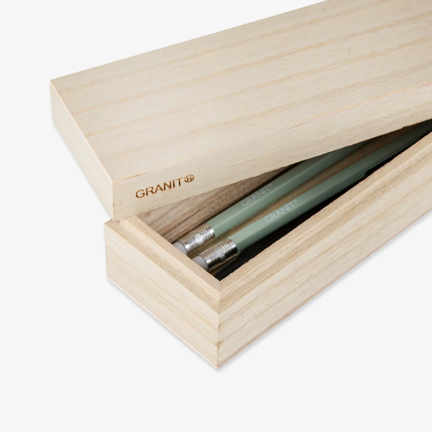Hübsche Stiftbox aus Holz mit Deckel, passend zu unseren anderen Schreibtisch-Accessoires aus Holz. Maße: 5 x 6 x 21 cm.
