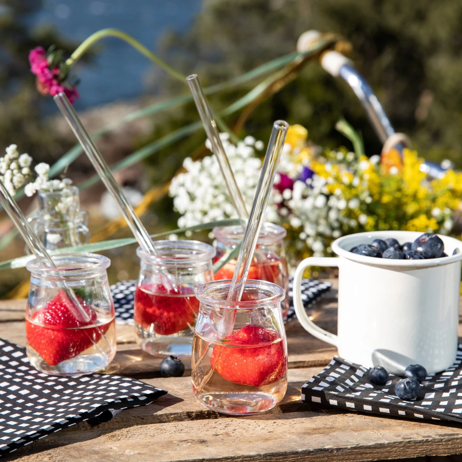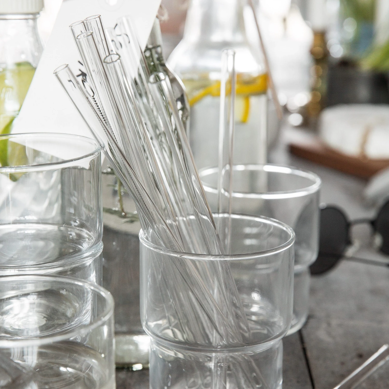 Die Strohhalme sind aus Borosilikatglas hergestellt, das chemisch beständig ist und sehr gute Hygieneeigenschaften hat. Das Glas ist hart und beständig gegen Kratzer und hohe Temperaturen. Eine passende Reinigungsbürste ist enthalten.