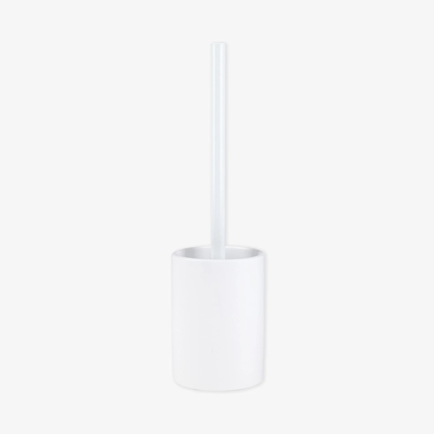 | Stilvoll gestaltete Toilettenbürste für das Badezimmer. Hergestellt aus mattweißem Dolomitstein und Kunststoff. Maße des Behälters: 13,5 cm x 9,8 cm. |