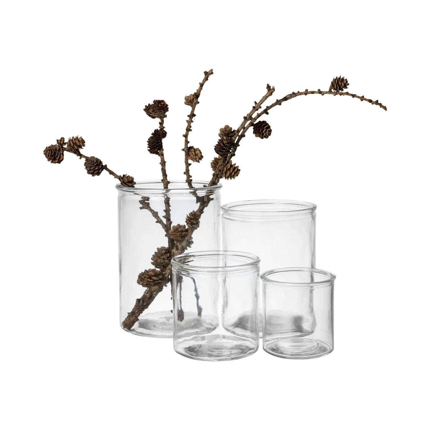 Zylindrische Vase aus Pressglas, das der Vase einen rustikalen und variierenden Finish verleiht. Erhältlich in vier Größen.